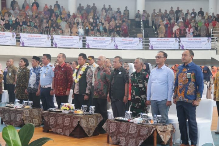 CIBINONG, DINAMIKA NEWS — Pj. Bupati Bogor Asmawa Tosepu ajak Kepala Sekolah SDN se-Kabupaten Bogor lakukan Deklarasi Sekolah Bersih Narkoba (Bersinar) dalam rangka pencegahan secara dini terhadap penyalahgunaan dan penggunaan narkotika masuk sekolah dasar, untuk mewujudkan Kabupaten Bogor Bersih Narkoba (Bersinar), yang berlangsung di gedung laga satria Cibinong, Kamis (25/1/24).