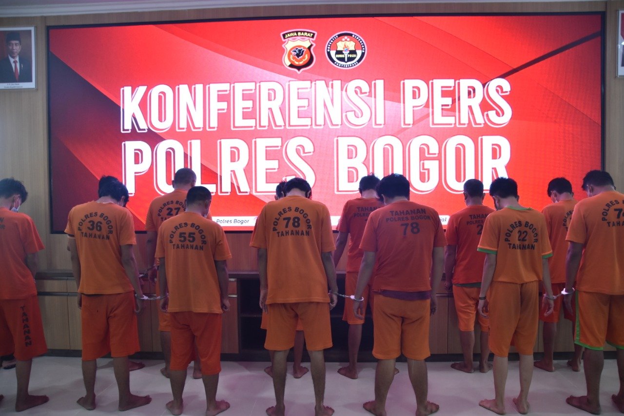 Sebanyak 14 Tersangka dari 11 kasus Narkoba berhasil di ungkap oleh Satuan Reserse Narkoba. “14 Tersangka dengan inisial DH, SY, AS, AS, AR, RJ, EB, DA, PJ, SY, FF, AJ, HU & WO, berhasil kami tangkap di sejumlah lokasi diantaranya wilayah Cisarua, Sukaraja, Cigombong, Babakan Madang, Citereup, Cibinong, Megamendung, dan Cileungsi”. Ungkap Kapolres Bogor AKBP Harun,S.I.K.,S.H.