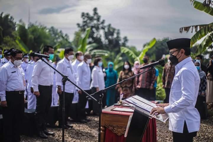 KOTA BOGOR, DinamikaNews.id — Wali Kota Bogor Bima Arya melantik 338 pejabat di Lingkungan Pemkot Bogor secara daring dan luring, Kamis (26/2/2021). Pelantikan luring atau offline dilakukan di salah satu titik program benah kampung di Setu Kirey, Jalan Pabuaran Cimanggis, Kelurahan Mekarwangi, Tanah Sareal, Kota Bogor, Jumat (26/2/2021).
