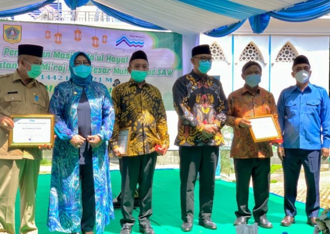 BOGOR, DinamikaNews.id — Bupati Bogor, Ade Yasin ingin Perumda Air Minum Tirta Kahuripan Kabupaten Bogor mampu mengembangkan jaringan pelayanannya sampai ke pelosok. Hal tersebut dikatakannya saat menghadiri acara Peringatan Isro Mi’raj Nabi Muhammad SAW 1442 H dan Peresmian Masjid Maul Hayat PDAM Kabupaten Bogor, Selasa (23/3) sebagai rangkaian peringatan hari jadi Perumda Air Minum Tirta Kahuripan Kabupaten Bogor ke-40 dan hari air sedunia tahun 2021.