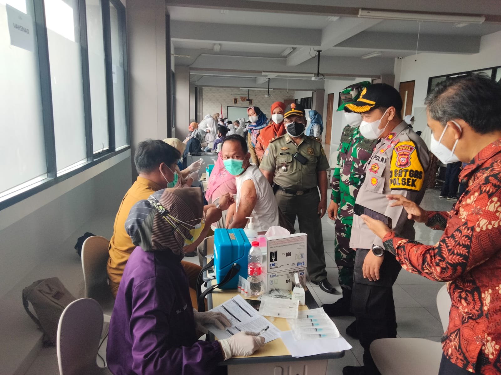 Pada pelaksanaan Vaksinasi  dosis ke satu dan dosis kedua yang di selenggarakan di Mako Polsek Cileungsi Capai 1000 orang dalam pelaksanaan Vaksinasi Covid19 yang di gelar dalam satu hari.
