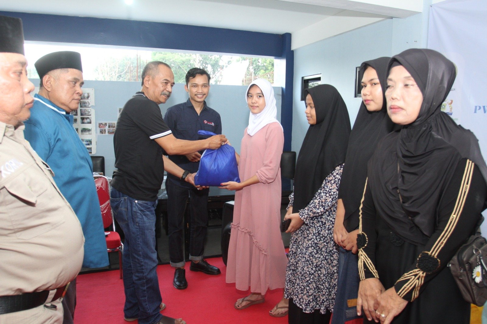 | Ketua Bidang Antar Lembaga PWI Jawa Barat, Bambang secara simbolis memberikan bantuan kepada anak yatim. |