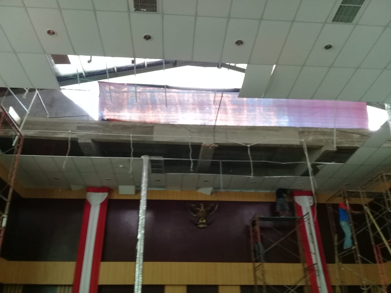 Plafon Ruangan Paripurna DPRD Kota Bogor Ambruk sehingga mengalami kerusakan parah.