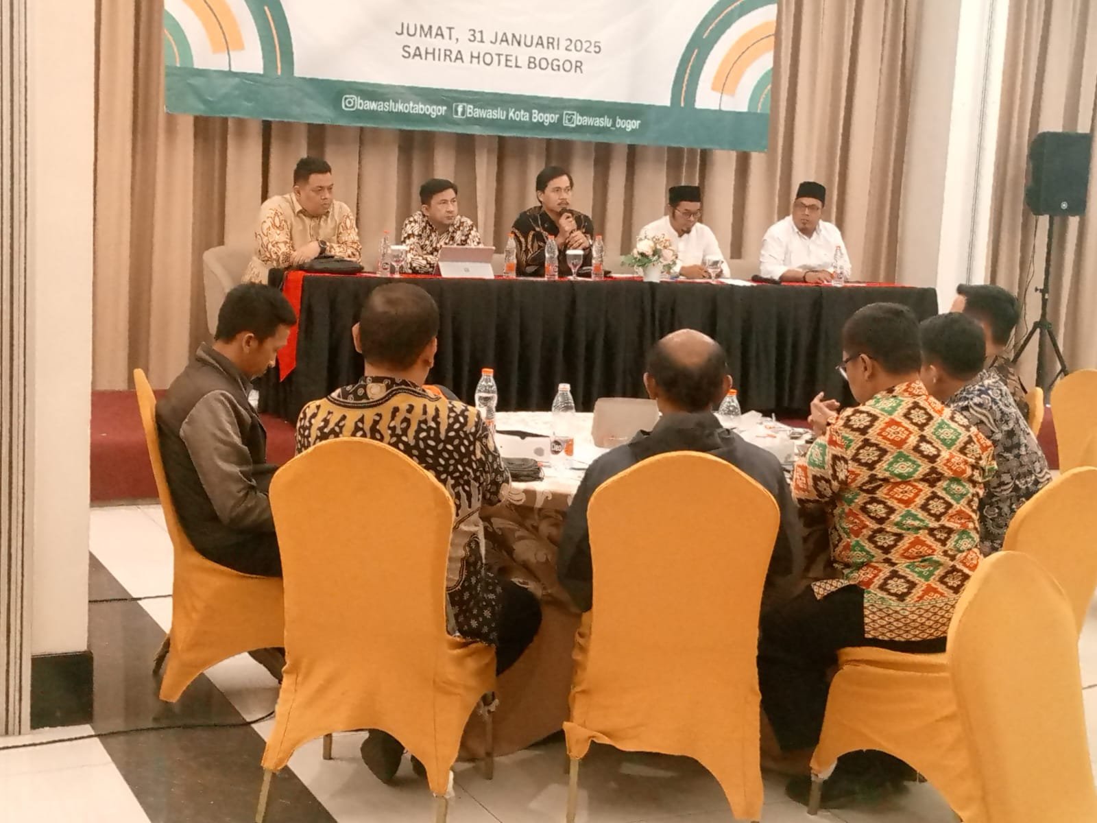 | Rapat evaluasi pelaksanaan pengawasan Pilkada Serentak 2024 di Sahira Hotel, Kelurahan Tanah Sareal, Kecamatan Tanah Sereal, Kota Bogor, pada Jum’at, 31 Januari 2025. |