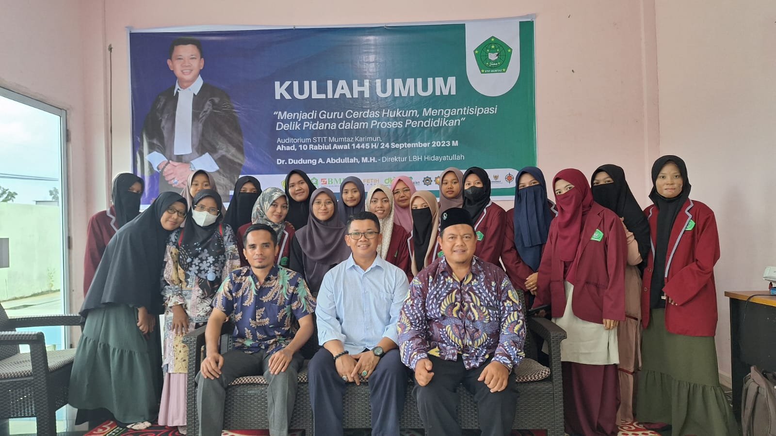 KARIMUN, DINAMIKA NEWS — Sekolah Tinggi Ilmu Tarbiyah (STIT) Mumtaz menggelar Kuliah Umum yang menghadirkan Direktur Lembaga Bantuan Hukum (LBH) Hidayatullah, Dr. Dudung A. Abdullah, SH, Ahad, 8 Rabi’ul Awal 1445 (24/9/2023).