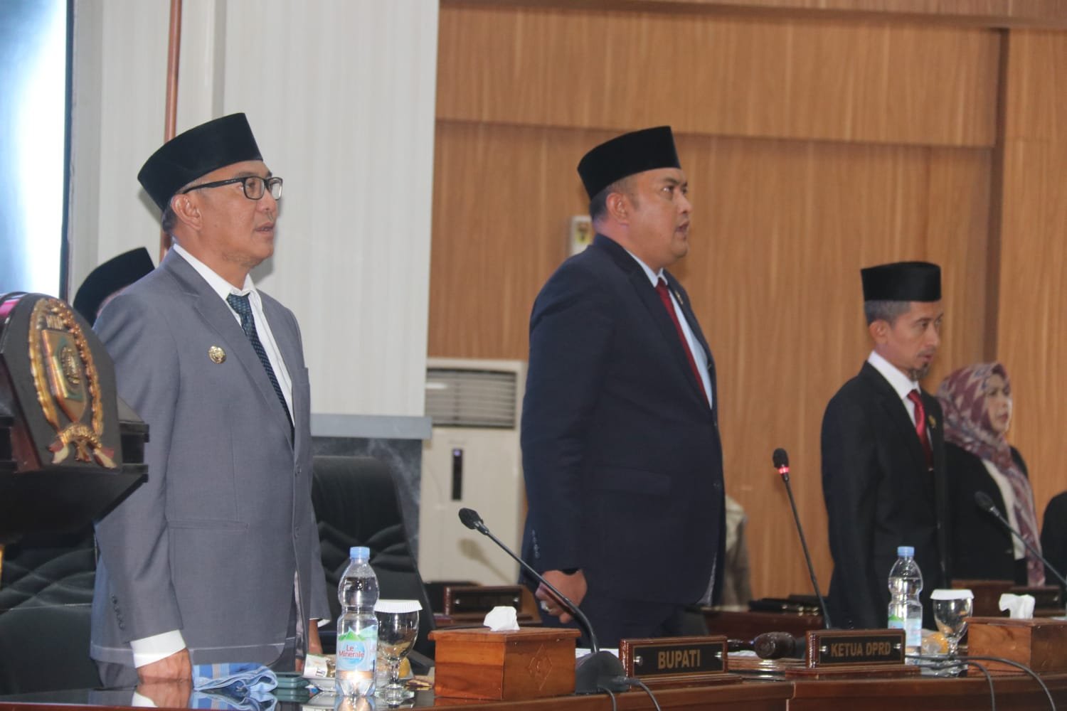 Bupati Iwan Setiawan berharap agar pimpinan dan seluruh anggota DPRD dapat menerima penyampaian rancangan perubahan APBD beserta nota keuangan perubahan APBD tahun anggaran 2023 untuk dibahas di tingkat badan anggaran. (Marwin)