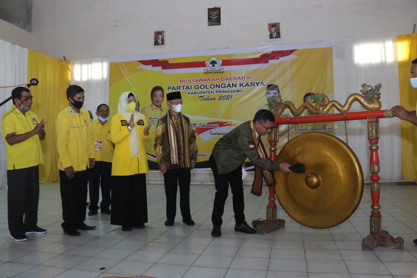 Bupati Pringsewu Sujadi dalam sambutannya berharap Musda III DPD II Partai Golkar Kabupaten Pringsewu ini menjadi momentum untuk membulatkan semangat kebersamaan dalam memajukan partai serta memajukan Kabupaten Pringsewu yang Bersahaja dan Provinsi Lampung yang Berjaya.