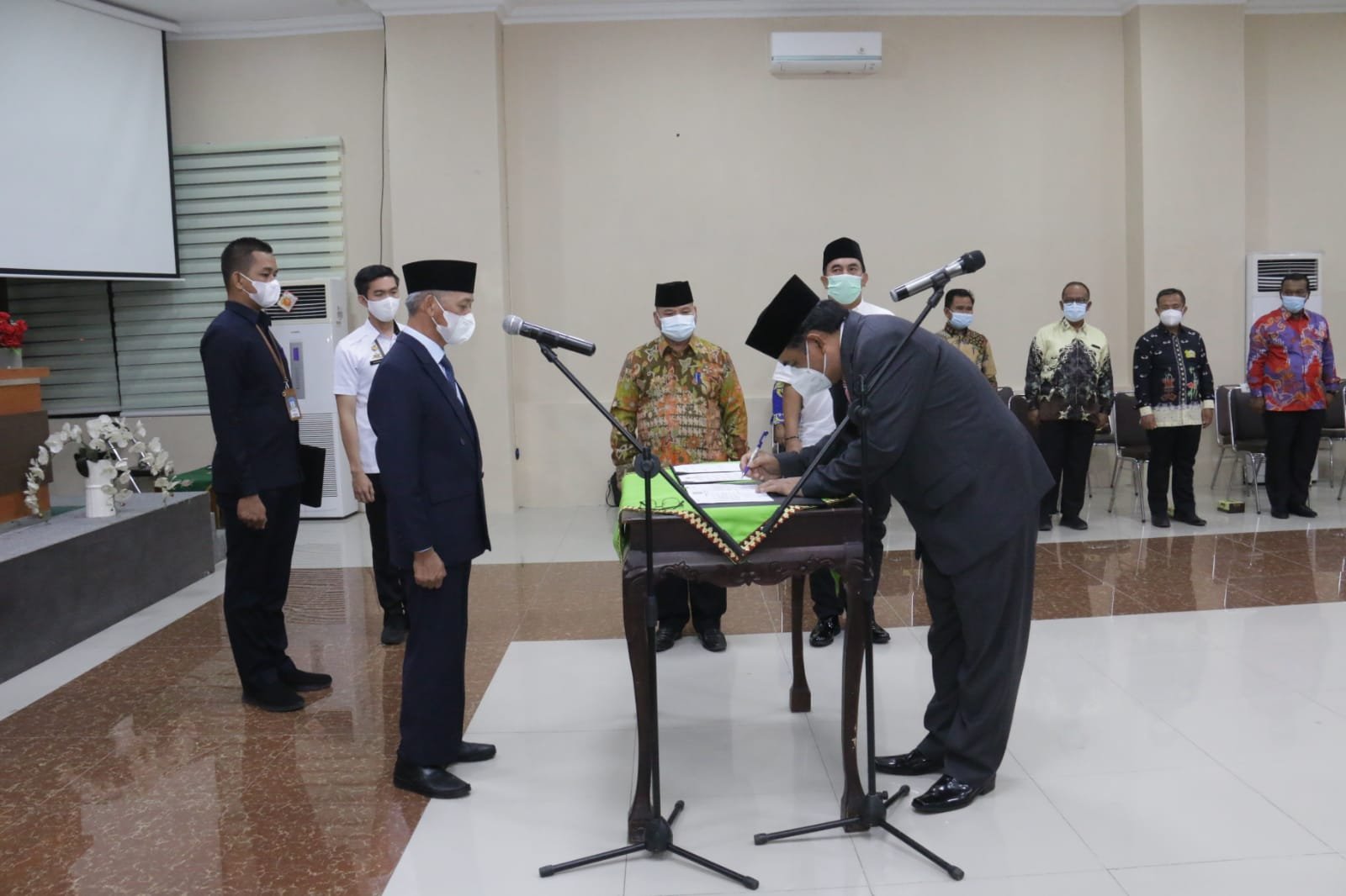 PRINGSEWU – Dinamikanews.id. Bupati Pringsewu H.Sujadi melantik dan mengambil sumpah Drs.H.Heri Iswahyudi, M.Ag. sebagai Sekretaris Daerah Kabupaten Pringsewu. Prosesi pelantikan digelar di Aula Utama Kantor Pemkab Pringsewu, Rabu (23/12/20) malam.