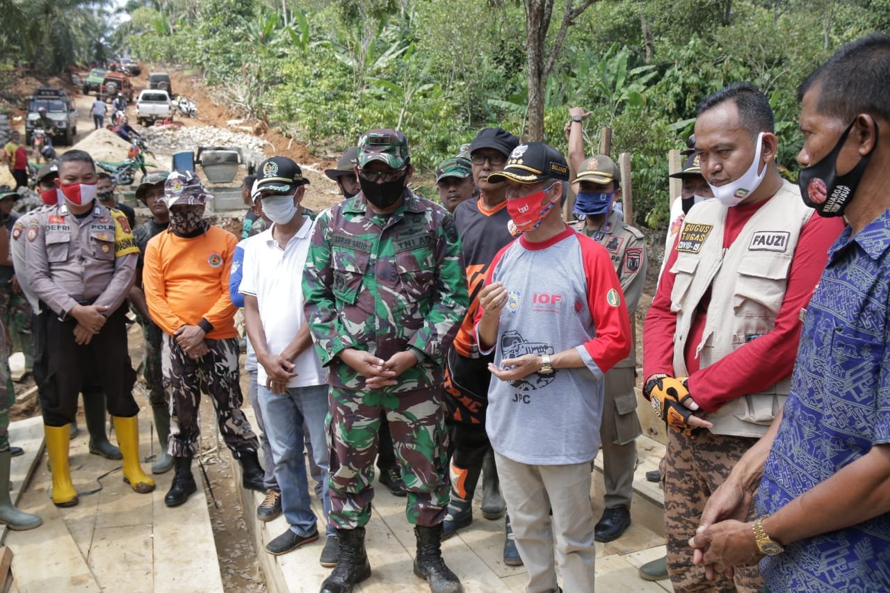 Dinamika News – PRINGSEWU – Bupati Pringsewu H.Sujadi dan Wakil Bupati Pringsewu Dr.H.Fauzi, SE, M.Kom., Akt., CA, CMA bersama Ketua DPRD Pringsewu Suherman, SE meninjau kegiatan TNI Manunggal Membangun Desa (TMMD) ke-108 dan Tahun 2020 di Pekon Gunung Raya dan Way Kunyir, Kecamatan Pagelaran Utara, Ahad (12/7/20). Turut mengikuti kegiatan tersebut, rombongan para off-roader dari IOF Pringsewu dan pecinta motor trail Pringsewu.