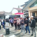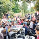 Aksi unjuk rasa warga Desa Pabuaran Kecamatan Sukamakmur di halaman kantor Desa