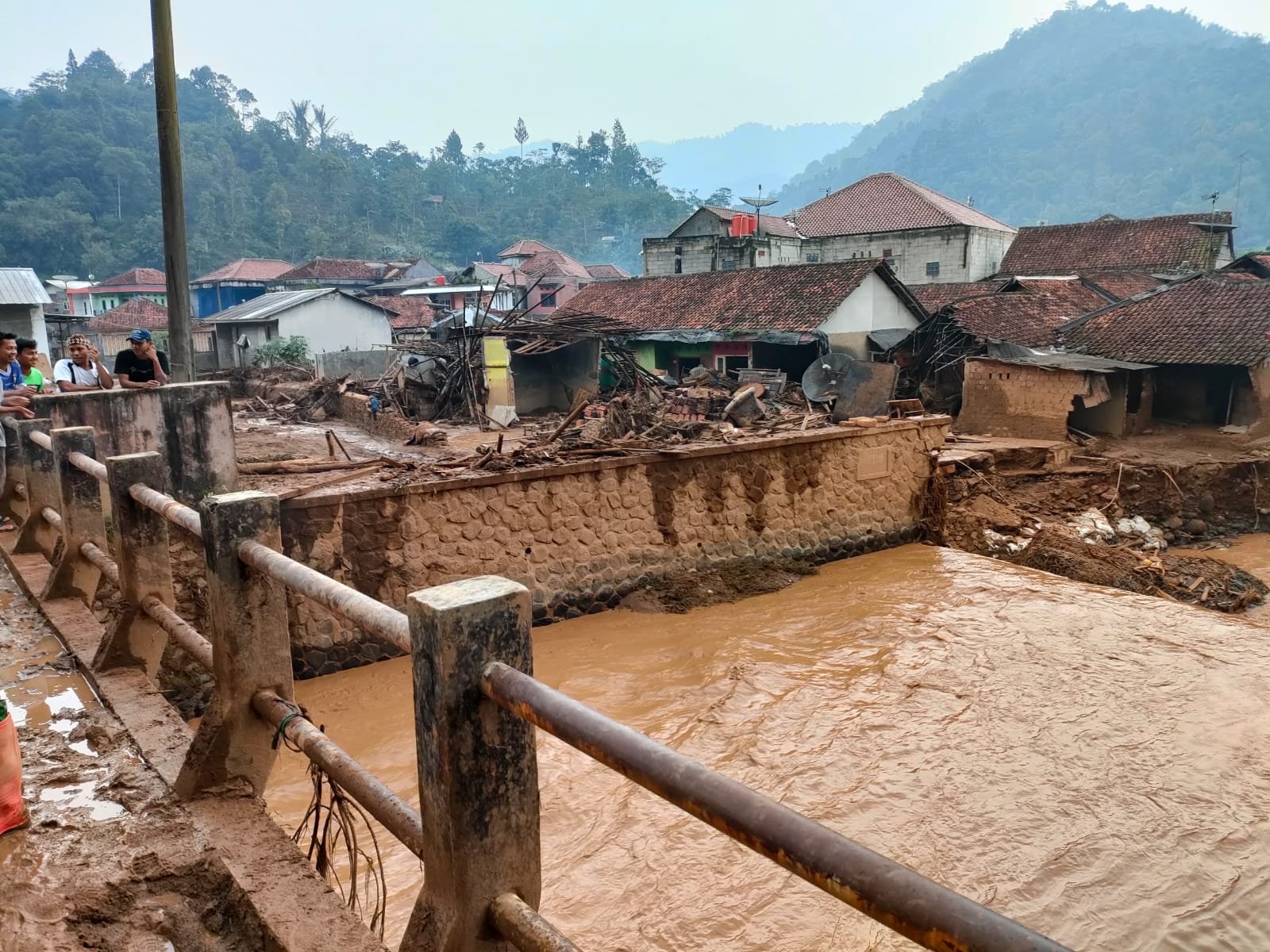 meluap naik dan memporak porandakan puluhan rumah penduduk di Kampung Cisarua,