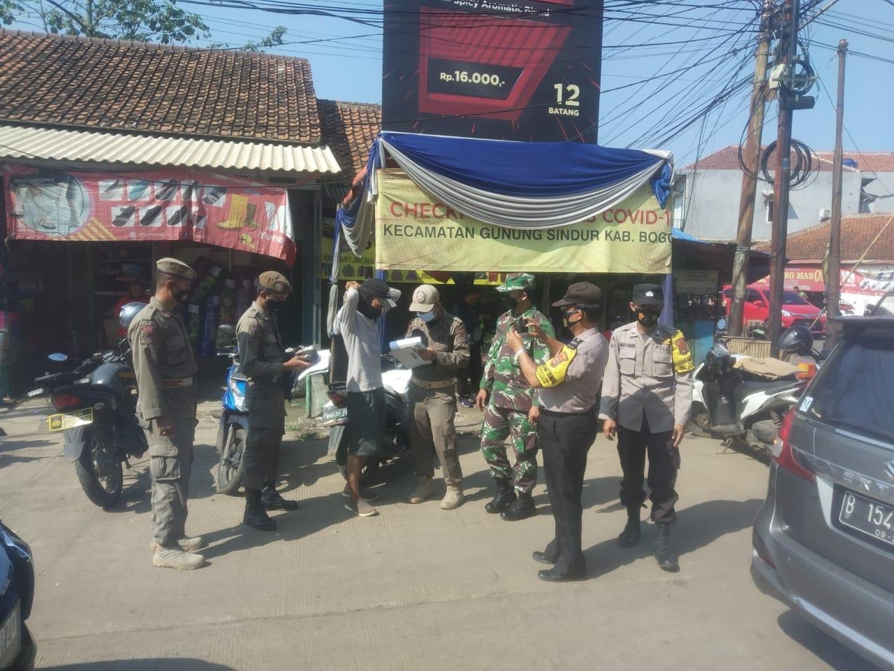 Bogor, DinamikaNews — Polsek Gunungsindur bersama Koramil dan Satpol PP melaksanakan kegiatan Operasi PPKM di Simpang Pasar Prumpung Gunungsindur dipimpin langsung oleh Kapolsek Gunungsindur AKP Birman Simanullang, SH, pada Senin (28/06/2021).