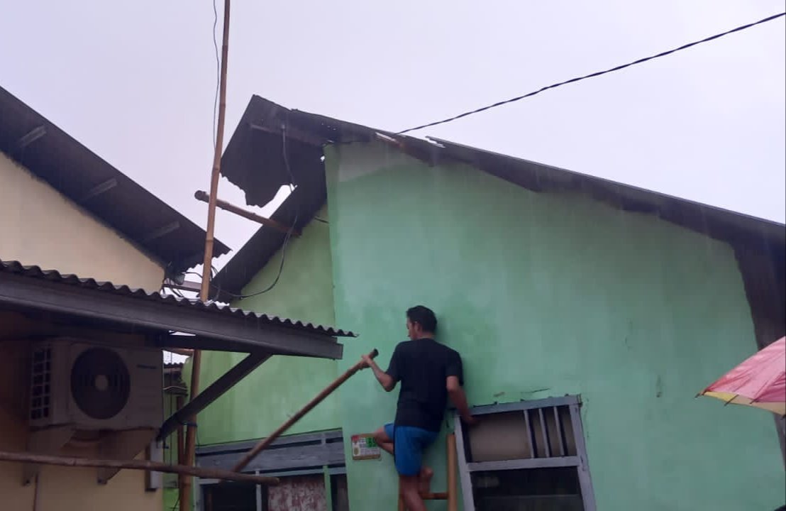 “Dengan begitu dasyatnya hujan disertai angin kencang ada beberapa rumah yang atapnya terbang keluar, termasuk rumah saya sendiri. Atap depan beberapa asbes terbawa angin dan menimpa kerumah tetangga,” kata Adit kepada wartawan, Selasa (19/10/2021).