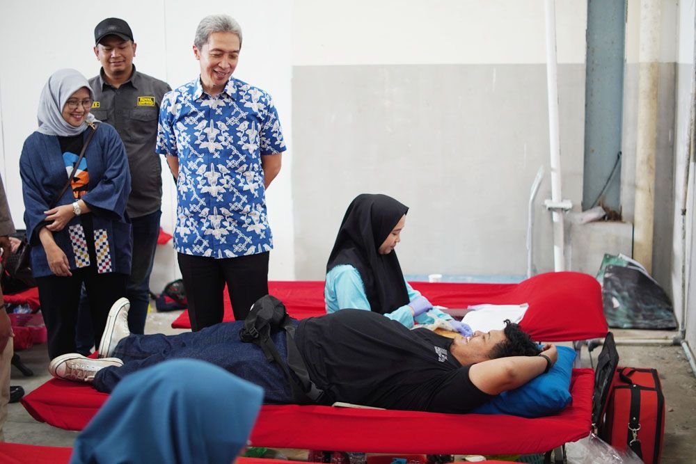 “Dengan donor ini kondisi fisik juga sehat kan, staminanya makin oke,” kata Dedie saat berbincang dengan pendonor.