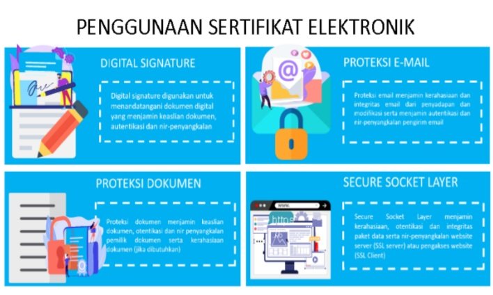 tertuang dalam beberapa dasar hukum penerapan sertifikat elektronik yakni, UU ITE (2008) dan PP PSTE (2012) bahwa, sertifikat Elektronik adalah sertifikat yang bersifat elektronik yang memuat tanda tangan digital dan identitas yang menunjukkan status subjek hukum para pihak dalam Transaksi Elektronik yang dikeluarkan oleh Penyelenggara Sertifikasi Elektronik.