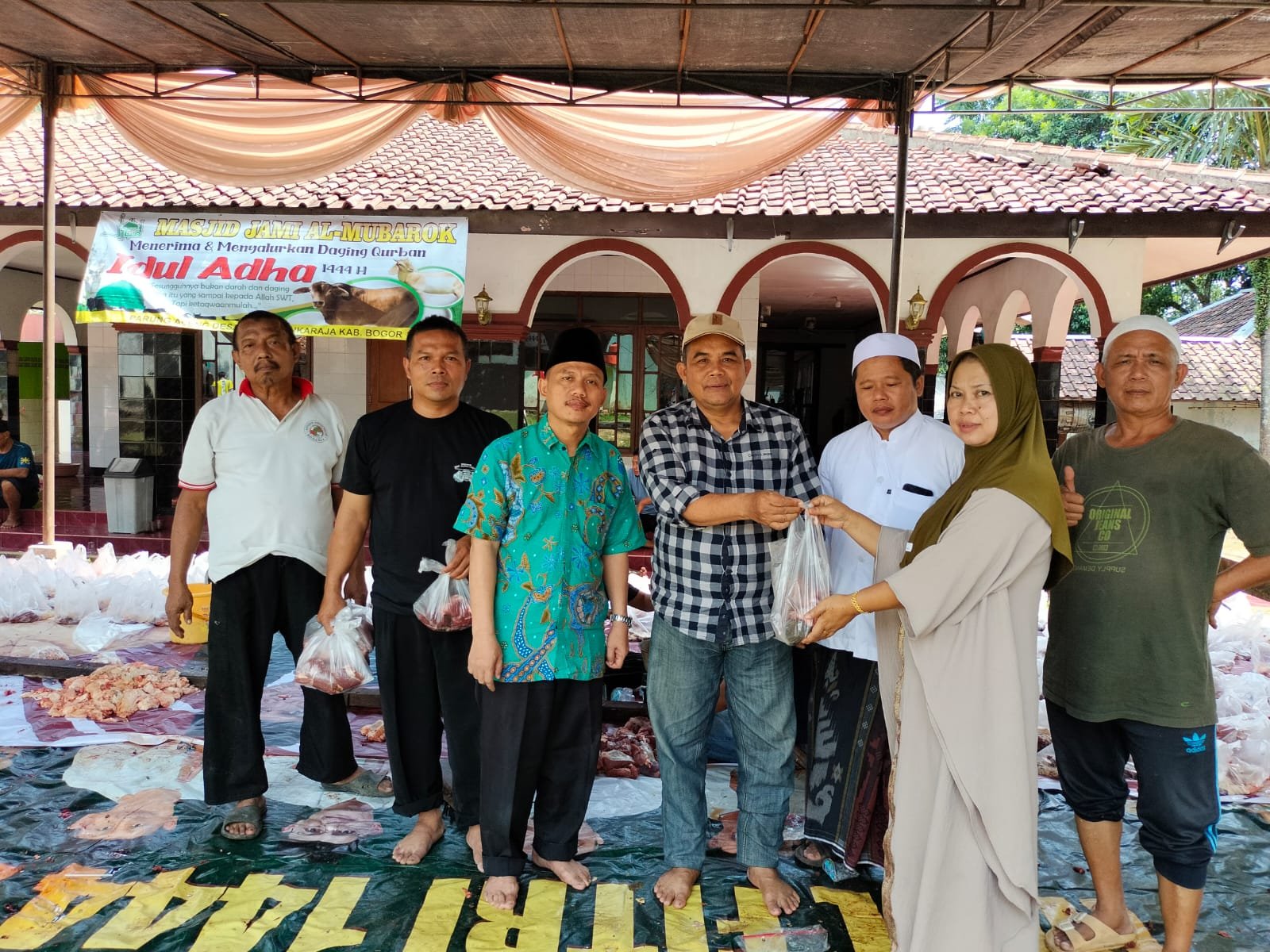 “Alhamdulillah tahun ini, panitia pemotongan hewan Qurban masjid Al Mubarok telah mendistribusikan sedikitnya 300 bungkus daging sapi dan 200 bungkus daging kambing. Untuk satu bungkus daging sapi berisi 1 kg daging,” jelas Dadung.