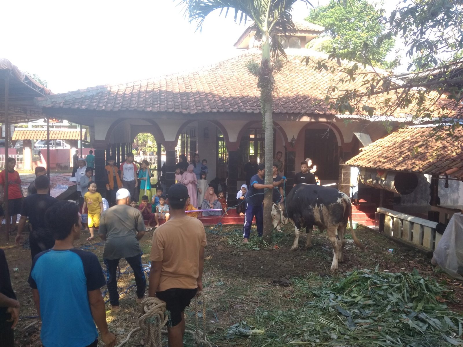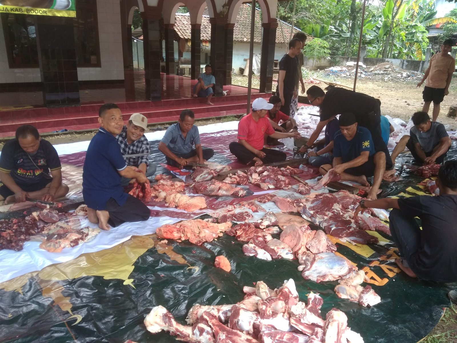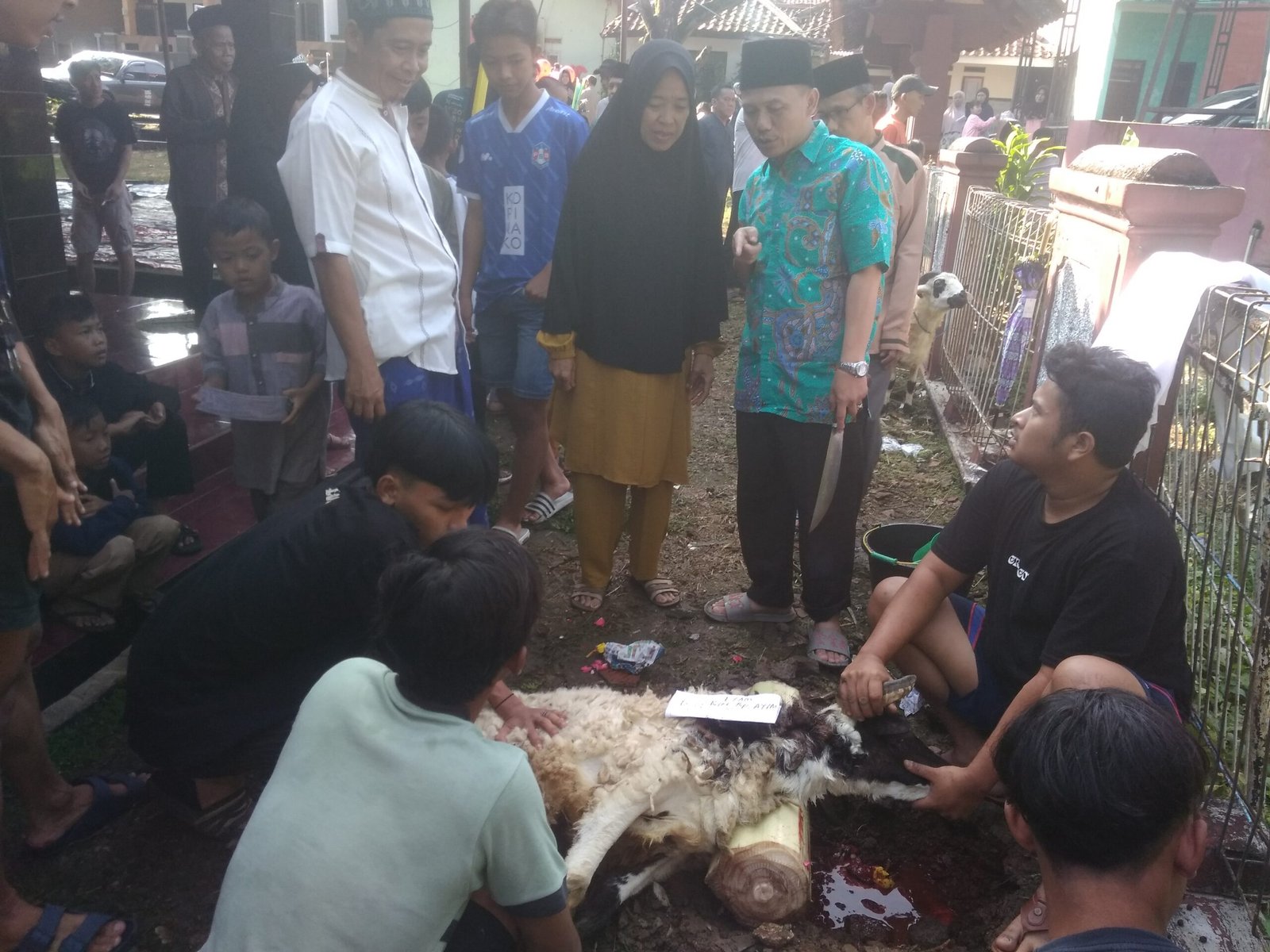SUKARAJA, DINAMIKA NEWS – – Peringatan Hari Raya Idul Adha 1444 Hijriyah, DKM Masjid Al Mubarok Parung Aleng Desa Cikeas Kecamatan Sukaraja Kabupaten Bogor menerima sebanyak 10 ekor hewan qurban. Pemotongan hewan qurban dilaksanakan di halaman masjid pada Kamis (29/06/23).