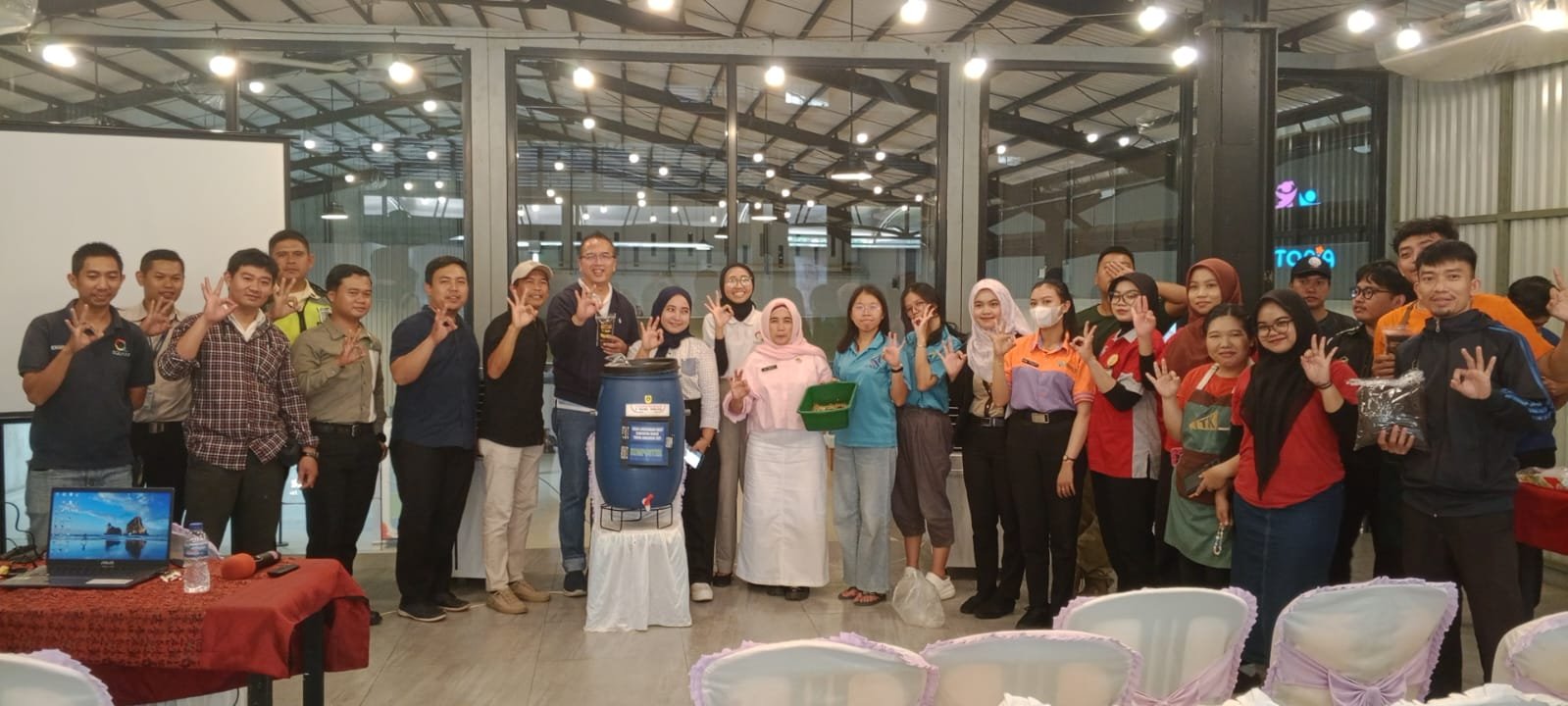 | Foto bersama usia acara pelatihan pengelolaan sampah di pusat perbelanjaan. |