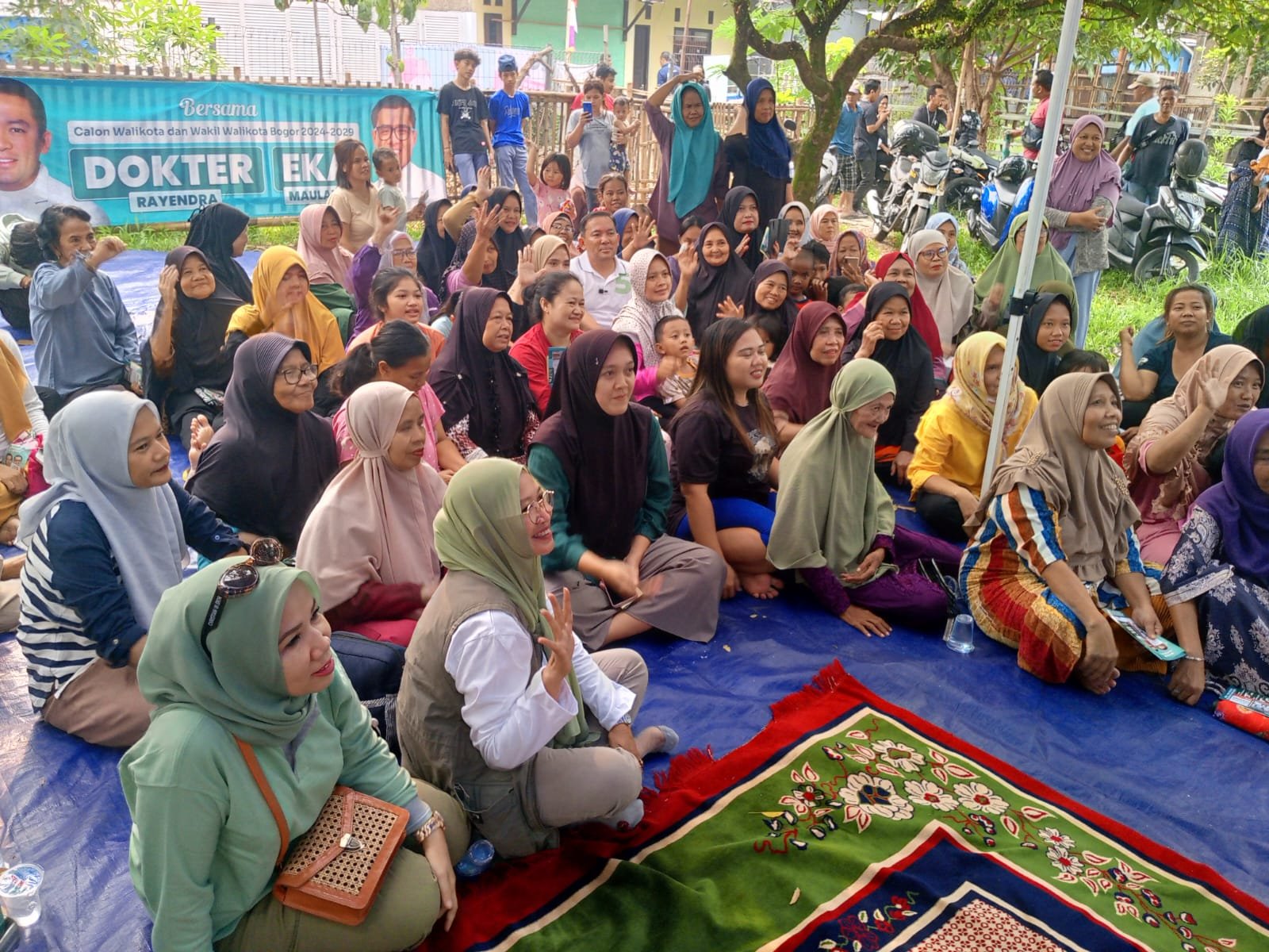 BOGOR, DINAMIKA NEWS — Calon Wali Kota Bogor nomor urut 5, Dokter Raendi Rayendra menyampaikan tentang program-program unggulan di bidang kesehatan, pendidikan, ekonomi dan beberapa yang lainnya, saat dialog dengan warga di Cemplang Baru Kelurahan Cilendek Barat Kecamatan Bogor Barat Kota Bogor pada Rabu, 23 Oktober 2024.