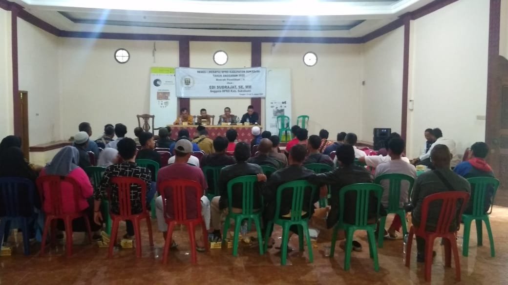 Dinamika News, Sukabumi – Anggota DPRD Komisi ll Kabupaten Sukabumi Edi Sudrajat dari fraksi Partai Amanat Nasional (PAN) lakukan Reses ke l Anggaran 2020 dengan mengundang Pemerintahan Desa, Tokoh Agama, Tokoh Masyarakat dari Dapil ll Kabupaten Sukabumi, bertempat di Aula Villa Antariksa, Cidahu, Kab.Sukabumi. Selasa (14/1)