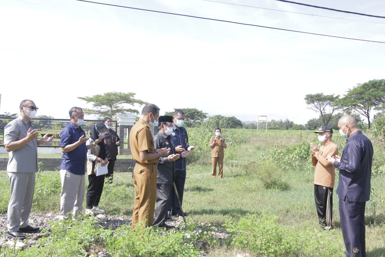 PRINGSEWU, DinamikaNews.id — Bupati Pringsewu H.Sujadi dan Ketua Pengadilan Tinggi Agama (KPTA) Bandar Lampung Drs.H.Ibrahim Kardi, SH, M.Hum. meninjau lokasi calon gedung kantor Pengadilan Agama Pringsewu di komplek perkantoran Pemkab Pringsewu, Selasa (16/3/21).