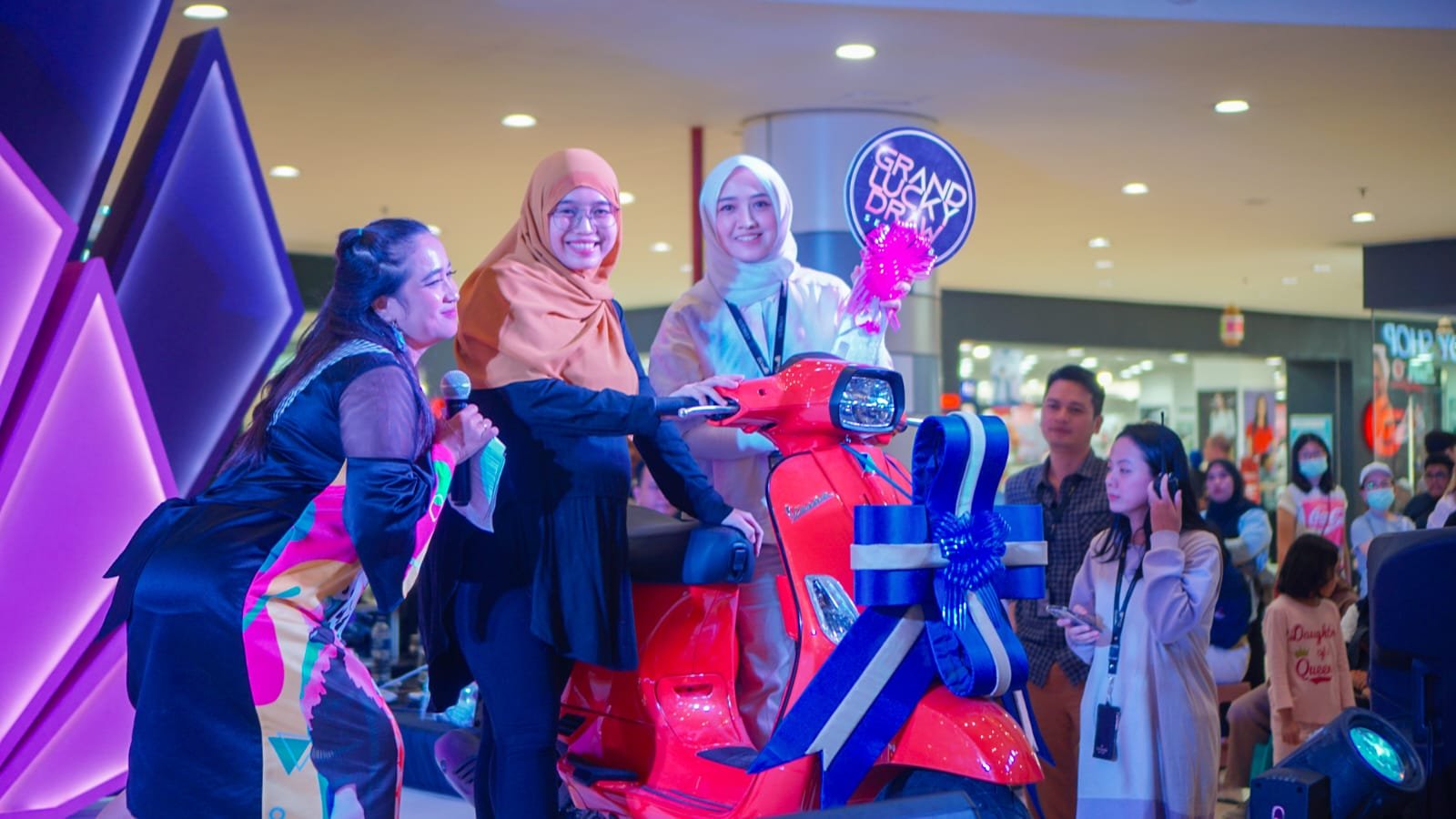pembelanjaan 1 Mei – 31 Agustus 2023. Hadiah yang akan diundi adalah 5 gift voucher senilai masing-masing Rp 1.000.000,-, 1 unit Mi Android TV 55′, 1 unit iPad Gen 9 64 GB, 1 unit iPhone 14, 1 unit motor Honda Genio 2022 Off The Road dan 1 unit motor Vespa S I-GET 2022 Off The Road. Di samping itu, karena merupakan sesi terakhir, maka 1 unit Honda All New HRV CVT off the road juga diundi hari ini sebagai hadiah Grand Prize dengan poin yang dikumpulkan periode 1 September 2022-31 Agustus 2023″, ungkap Farah.