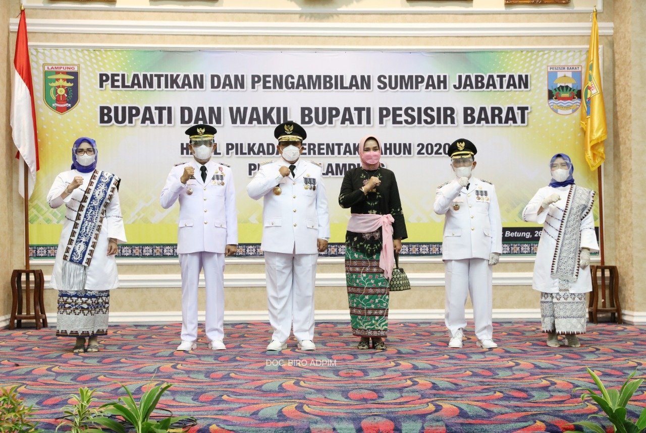 Pelantikan dan Pengambilan Sumpah Jabatan Bupati dan Wakil Bupati Pesisir Barat ini merupakan hasil Pilkada Serentak Tahun 2020.