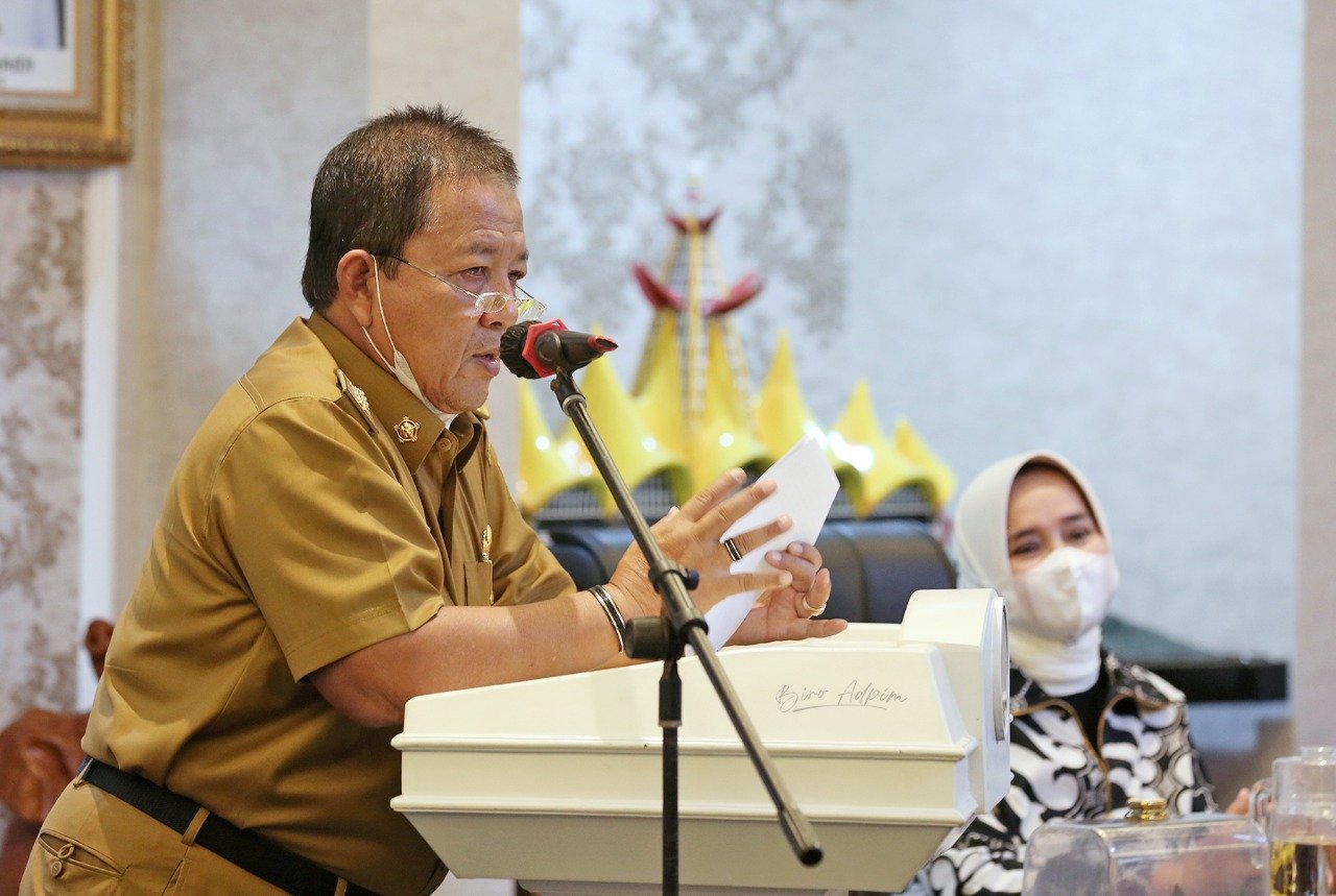 BANDARLAMPUNG — Dinamikanews.id. Gubernur Lampung Arinal Djunaidi melepas Kontingen Lampung untuk mengikuti ajang pencarian bakat Lomba Byarr Indonesia di Jakarta. Pelepasan dilakukan Gubernur di Ruang Rapat Utama, Kantor Gubernur, Bandarlampung, Selasa (20/10/2020).