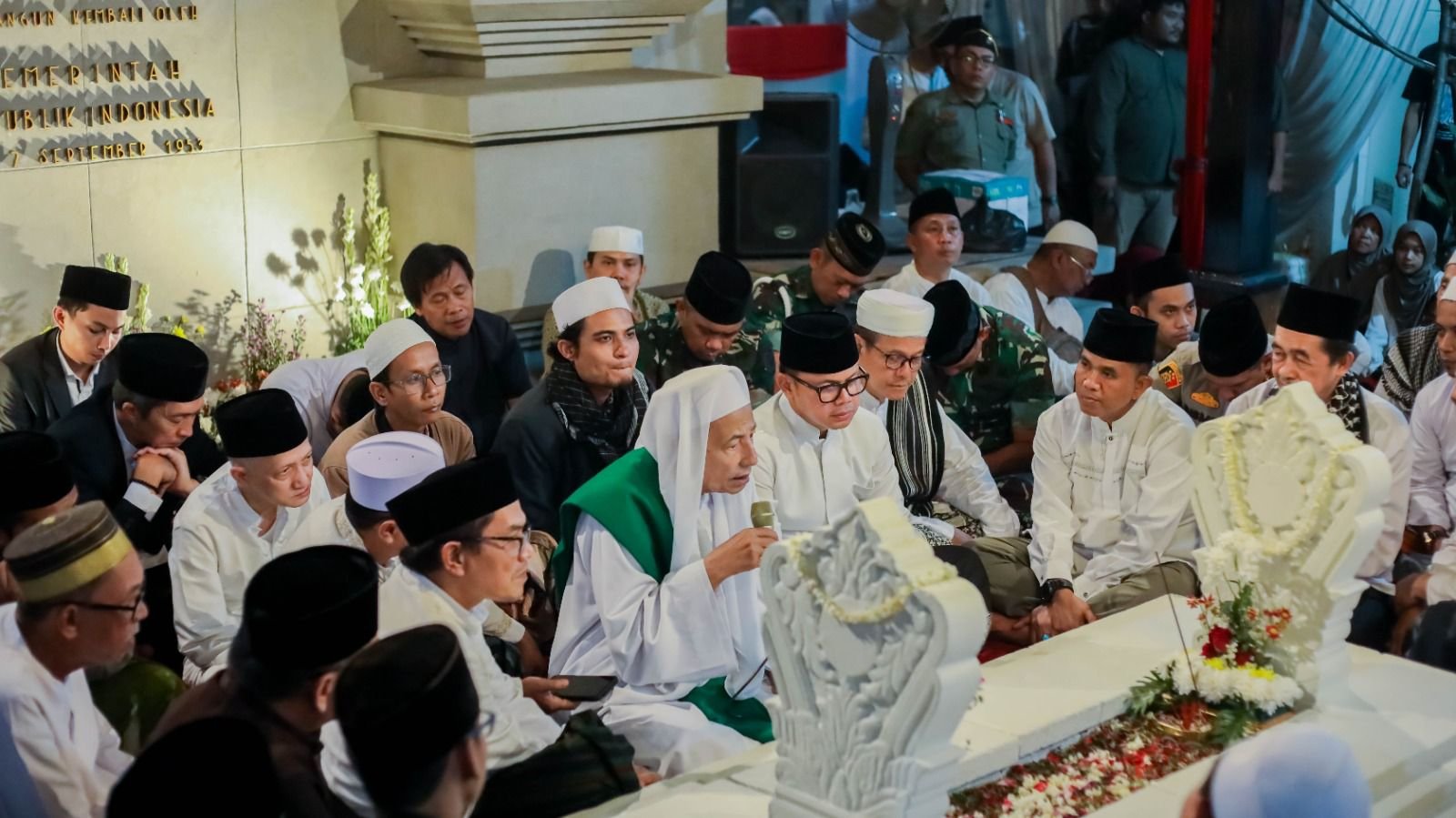 BOGOR DINAMIKA NEWS — Wali Kota Bogor, Bima Arya didampingi Wakil Wali Kota Bogor, Dedie A. Rachim Minggu (24/9/2023) menghadiri haul Raden Saleh ke-146 (1299-1445) bersama Maulana Habib Muhammad Luthfi bin Yahya digelar di Area Makam Raden Saleh, Kelurahan Empang, Kecamatan Bogor Selatan, Kota Bogor.