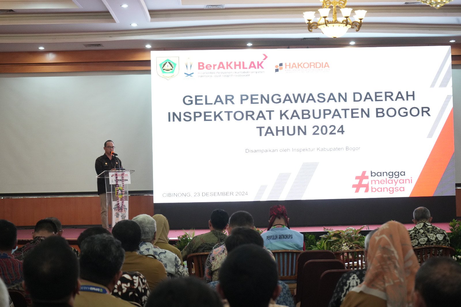 Cibinong, DINAMIKA NEWS — Peringati Hari Anti Korupsi Sedunia (Harkodia) tahun 2024, Pemerintah Kabupaten Bogor Gelar Pengawasan Daerah Tahun 2024 di Aula Bappenda Kabupaten Bogor, Senin (23/12/24).