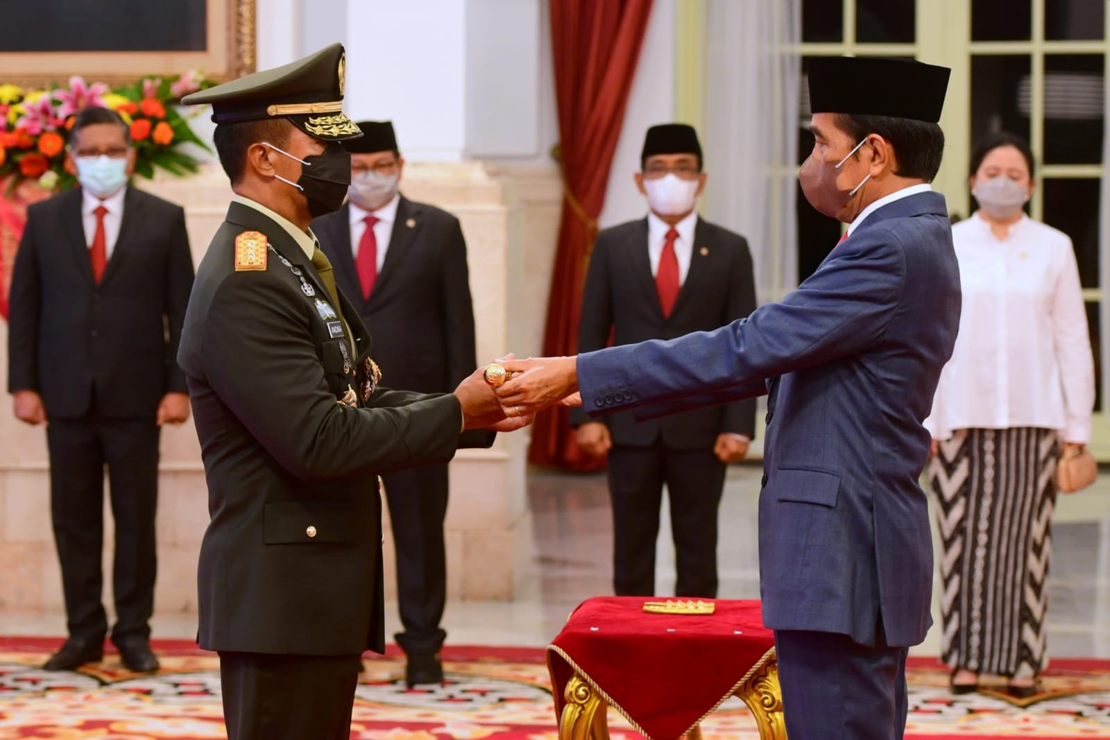 Jakarta, DinamikaNews — Presiden Joko Widodo pada Rabu, 17 November 2021, melantik dan mengambil sumpah jabatan Jenderal Andika Perkasa sebagai Panglima Tentara Nasional Indonesia (TNI). Acara pelantikan berlangsung di Istana Negara, Jakarta, dengan menerapkan protokol kesehatan.