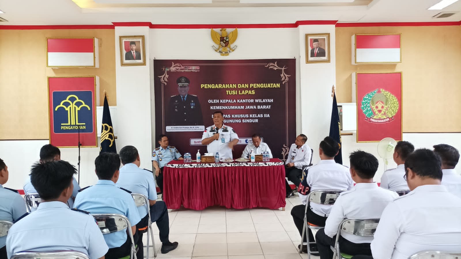 Ia, juga memberikan pengarahan dan penguatan kepada Jajaran pejabat struktural Lapas Khusus dan Lapas Narkotika Kelas IIA Gunung Sindur agar selalu menjalankan tugas sesuai SOP.