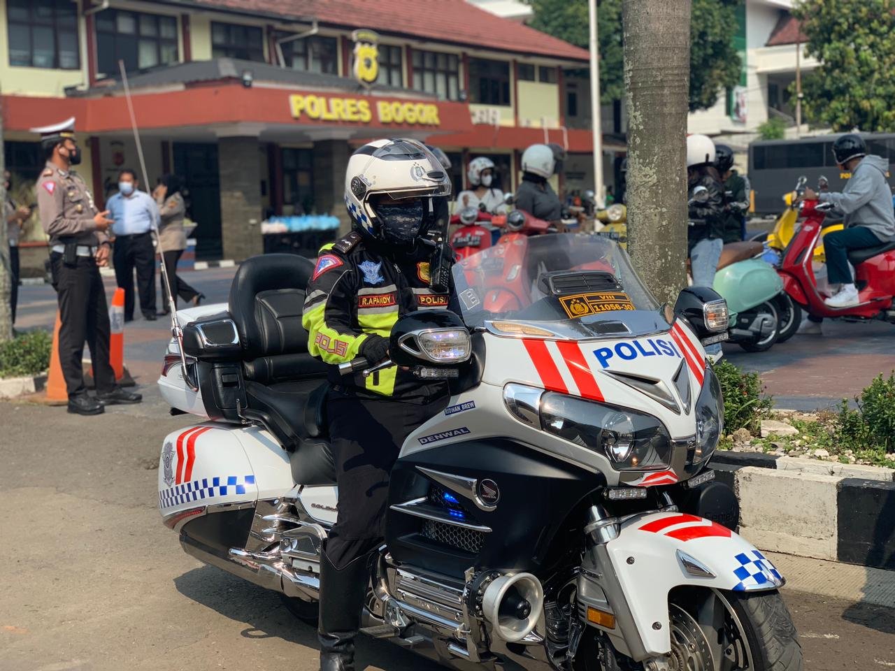 Cibinong, Dinamika News – Polres Bogor bersama Bhayangkari Cabang Bogor dan Komunitas Vespa (Ridrink Vespa) yang dikawal oleh Sat Lantas Polres Bogor membagikan 300 paket yang berisi kan makanan, air mineral, masker, handsanitizer dan vitamin kepada masyarakat Kabupaten Bogor yang membutuhkan secara mobile, pada Sabtu (31/07/2021).