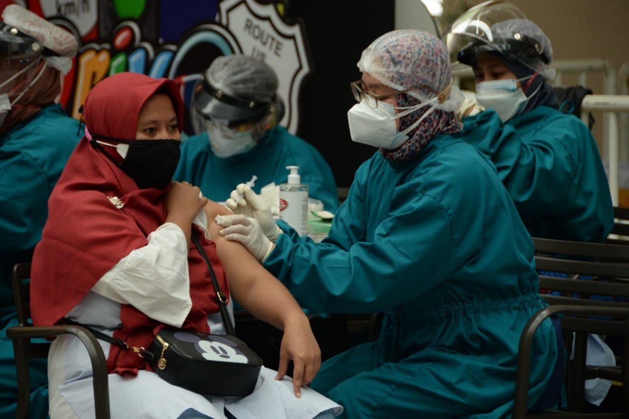 Bogor, DinamikaNews — Kapolres Bogor AKBP Harun, didampingi Kabag Ops Polres Bogor Kompol Fitra Zuanda dan Kasat Binmas AKP Achmad Budisantoso melakukan kunjungan ke Gerai Vaksin Presisi berlokasi di Mall Metropolitan Cileungsi dan PT. KIA Standard, Sabtu (31/07/2021).