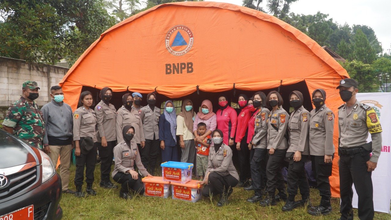 Kapolres Bogor AKBP Dr. Iman Imanuddin yang di dampingi Wakapolres Bogor Kompol Wisnu Perdana putra, Kabag Ops Polres Bogor Kompol I Kadek Vemil Ketua Bhayangkari Cabang Bogor Ny. Nia Imanuddin dan PJU Polres Bogor, melakukan peninjauan ke lokasi pergeseran tanah tersebut. Sekaligus memberikan bantuan paket sembako dan pemeriksaan kesehatan kepada masyarakat terdampak pergerakan tanah.