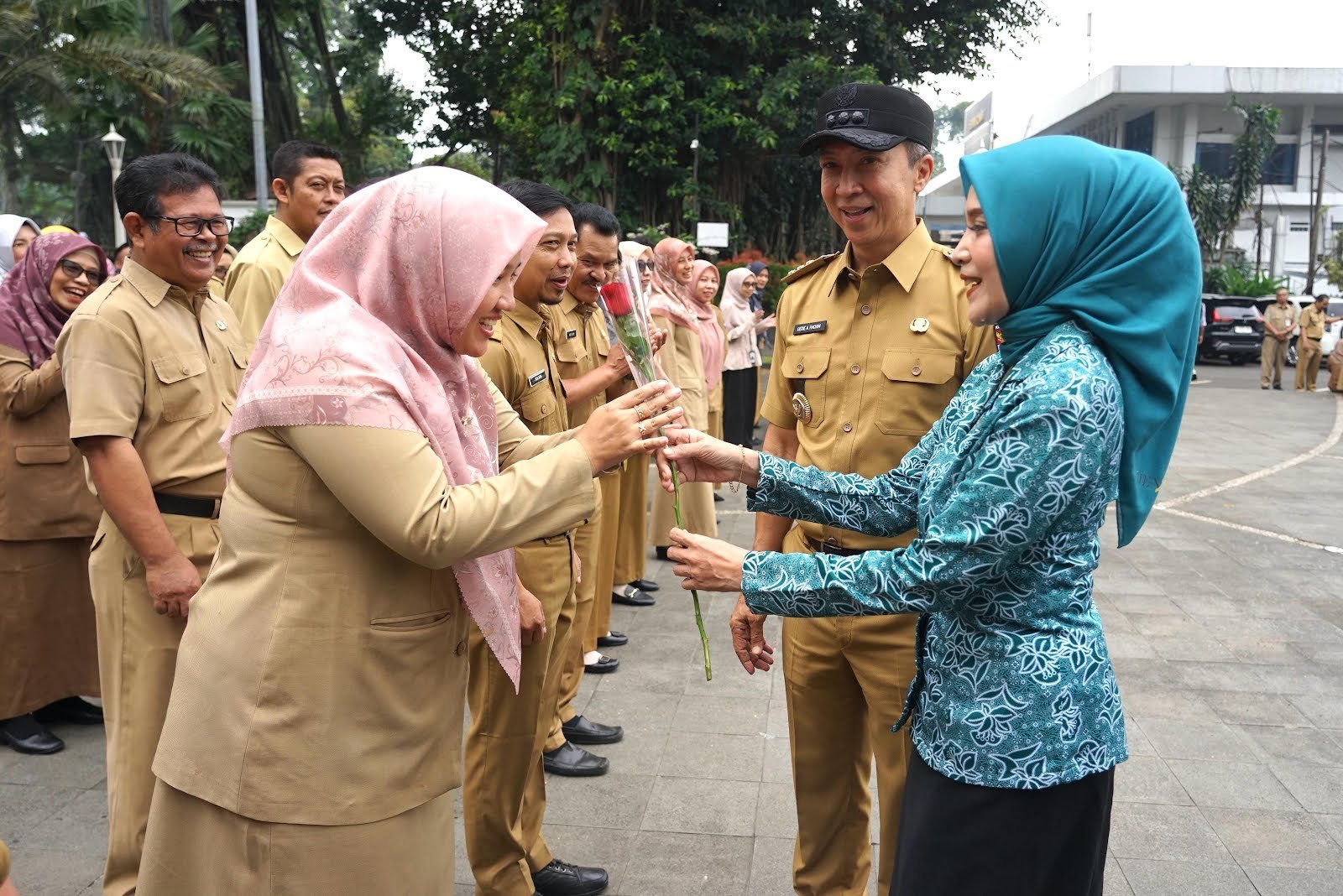 Bogor, DINAMIKA NEWS — Suasana penuh makna menyelimuti Plaza Balai Kota Bogor saat Pemerintah Kota (Pemkot) Bogor menggelar apel pagi dalam rangka memperingati Hari Kartini, Senin (21/4). Dalam momen tersebut, Wali Kota Bogor Dedie A. Rachim, didampingi Ketua Tim Penggerak PKK Yantie Rachim, serta Penjabat Sekretaris Daerah (Pj Sekda) Hanafi, menyematkan bunga kepada para ASN perempuan sebagai bentuk penghormatan atas dedikasi mereka.