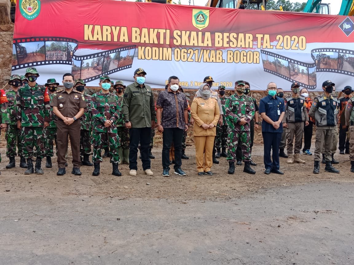 DinamikaNews, Bogor – Dalam Karya Bakti Skala Besar Kodim 0621/Kabupaten Bogor TA. 2020. Dengan pembukaan jalur Puncak II yang berlokasi di Desa Hambalang Kecamatan Citeureup Kabupaten Bogor, turut hadir dalam acara Karya Bakti Skala Besar tersebut yakni, Korem/SK, Kapolres Bogor, Bupati Bogor, Ketua DPRD Kabupaten Bogor, DPR-RI Komisi V, Dinas PUPR, Kecamatan, Desa serta jajaran. Senin, (2/11/2020)