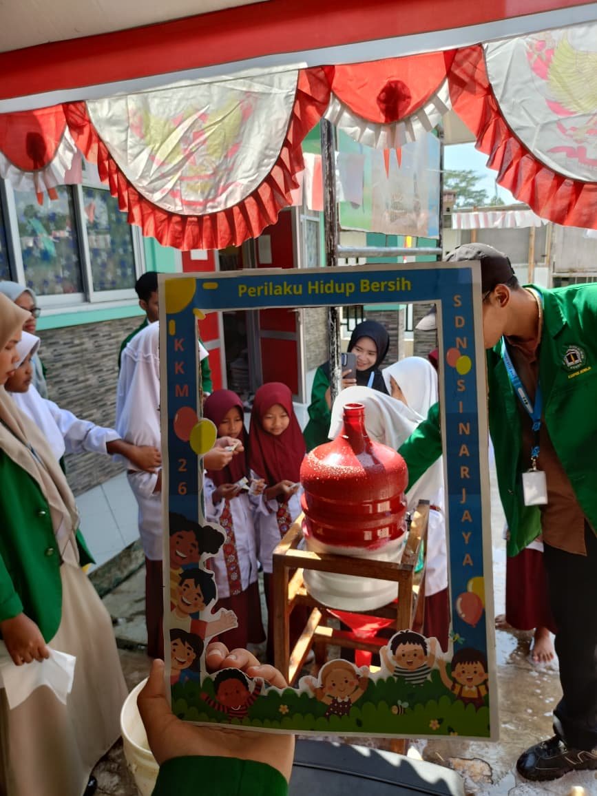 Kegiatan pertama berlangsung di SDN Sinarjaya pada pukul 08.00–10.00 WIB. Mahasiswa KKM memberikan edukasi mengenai cara mencuci tangan yang baik dan benar serta menyikat gigi dengan tepat.