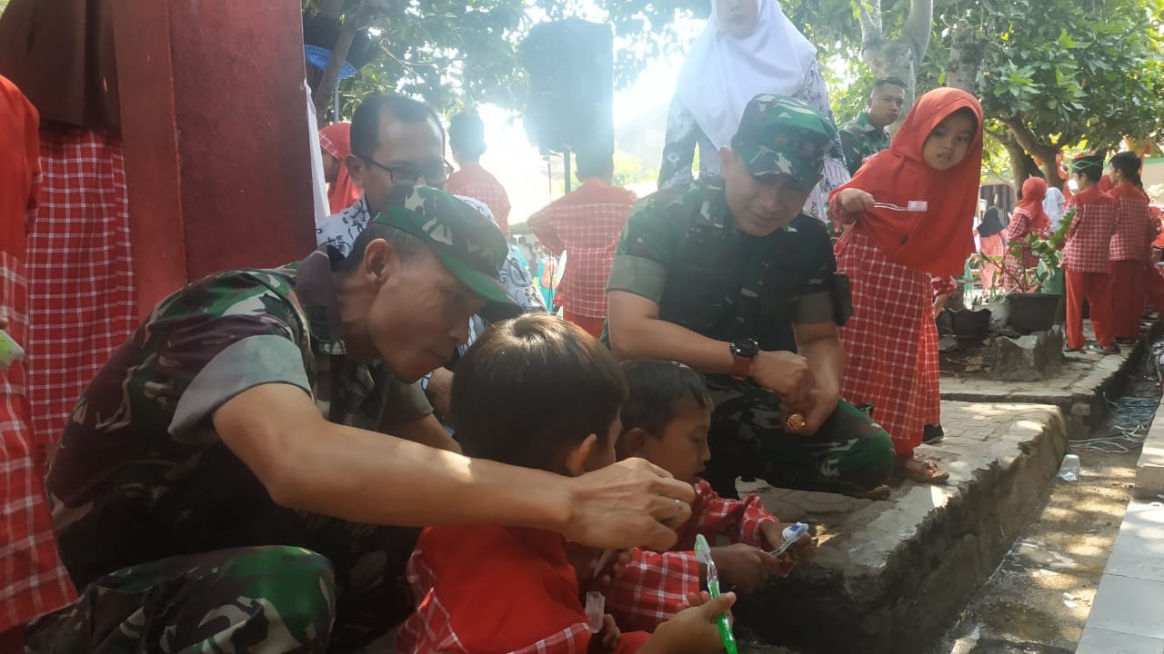 Dinamika News, Cianjur – Kodim 0608 Cianjur menggelar bakti sosial kesehatan gigi dalam memperingati HUT TNI ke 74 di SD Negeri Sirnagalih di Jalan Raya Cibeber, Desa Sirnagalih, Kecamatan Cilaku, Jumat (25/10/2019).
