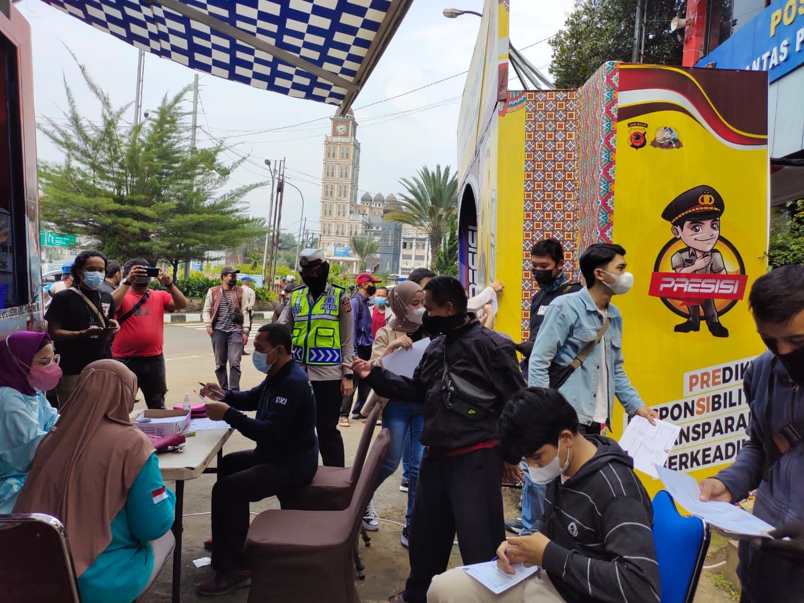 Bogor, Dinamika News –– Dalam rangka kunjungan kerja Kapolda Jawa Barat Irjen Pol Drs. Suntana, M. Si Polres Bogor menggelar vaksinasi massal di Pospam Gadog, Sabtu (16/04/2022).