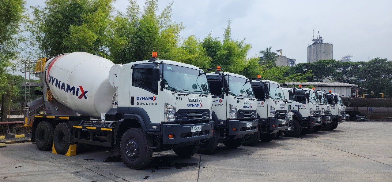 | Armada truk pengiriman beton baru tahun 2025 milik PT Solusi Bangun Beton. |