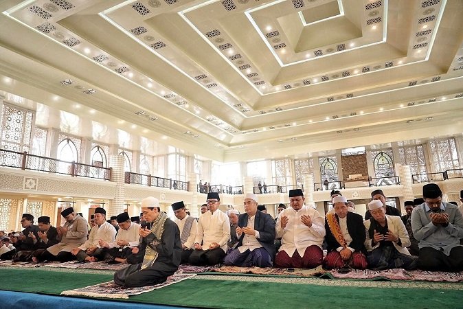 pembangunan masjid dan salat ashar berjamaah yang diikuti oleh ribuan