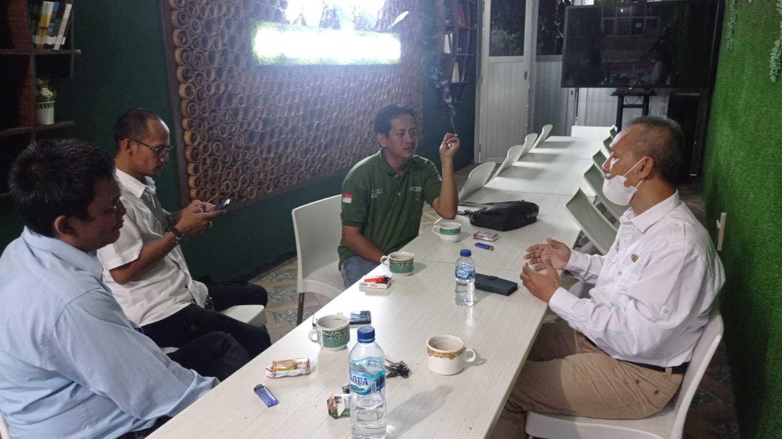 | Humas SMAN 3 Cibinong, Joko Maryono, SPd, MM (kanan) didampingi komte sekolah saat menjelaskan pelaksanaan PPDB onlinen 2023 kepada wartawan. |