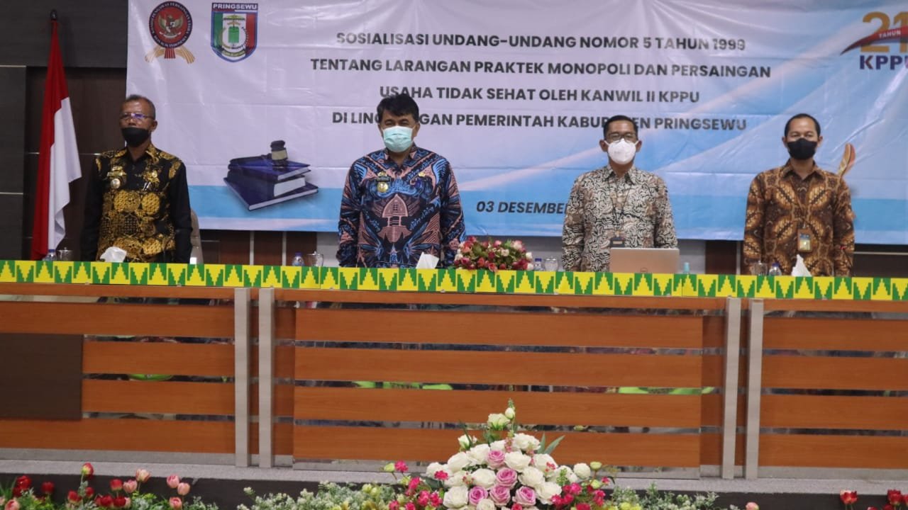Sekretaris Daerah Drs Heri Iswahyudi, M.Ag, membuka Sosialisasi Hukum Persaingan Usaha di kabupaten Pringsewu. Berempat di Aula utama kantor Bupati, Jum’at (03/12).