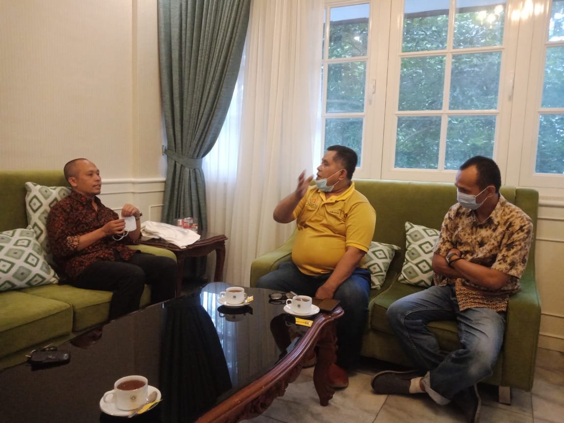 Ketua PWI Kabupaten Bogor H Subagiyo bersama wakil ketua Untung Bachtiar, diterima langsung ketua Tim Percepatan Pembangunan Strategis Kabupaten Bogor, Saepudin Muhtar alias Gus Udin di kantornya, Jumat (11/6).
