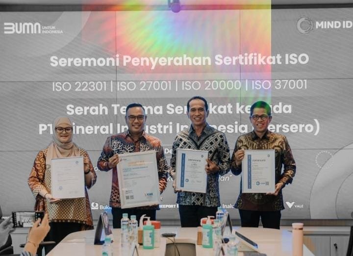 Jakarta, DINAMIKA NEWS – BUMN Holding Industri Pertambangan MIND ID menerima empat sertifikat ISO. Hal ini menunjukkan komitmen dan konsistensi perusahaan dalam implementasi prinsip berkelanjutan pada tata kelola perusahaan baik.