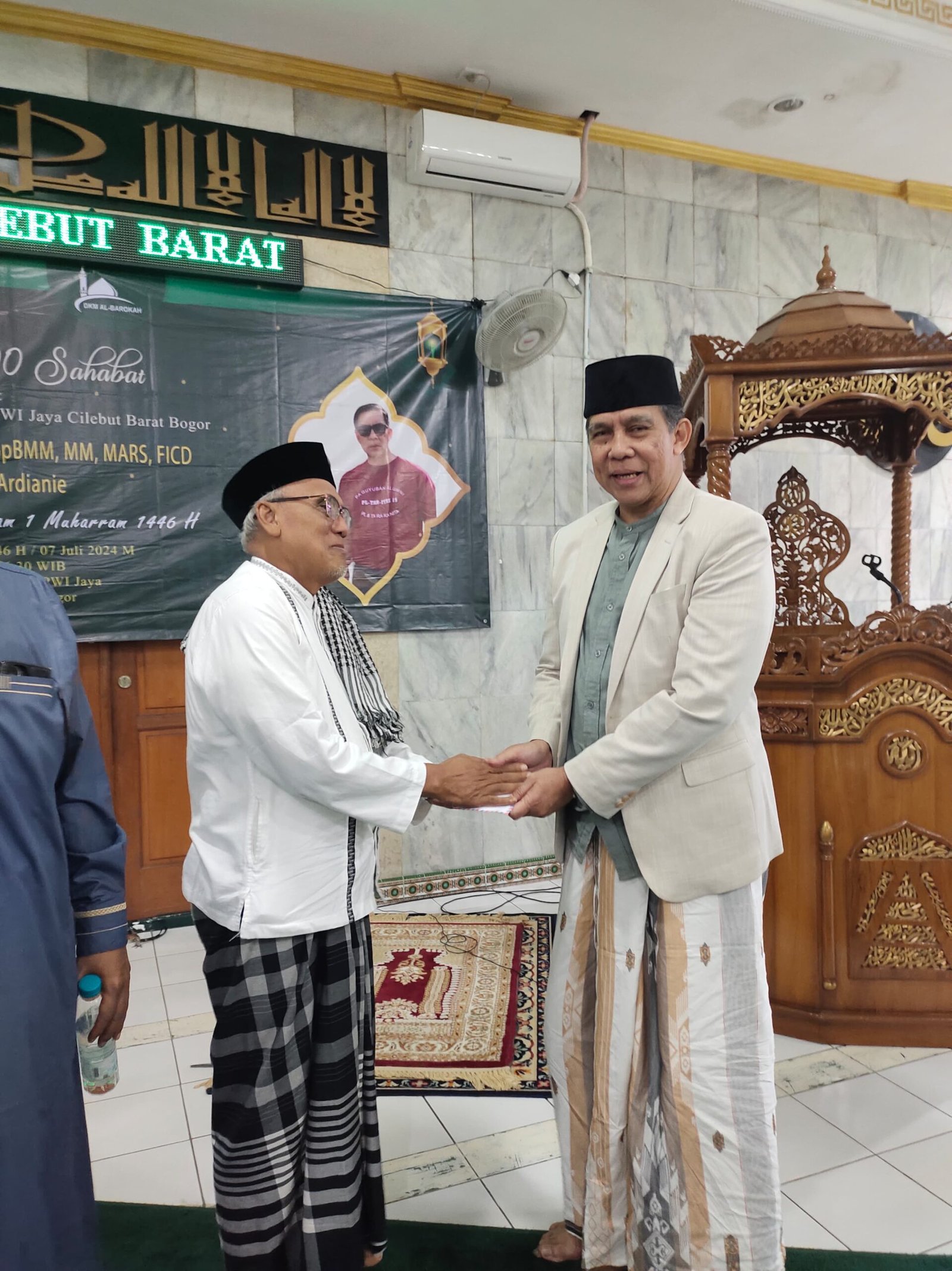 Kehadiran rombongan Paguyuban Rahmatan Lillalamin di masjid Albarokah, Komplek PWI Jaya, Cilebut Barat, disambut ketua DKM, H. Sentot Susetyo, beberapa wakil ketua DKM, antara lain, H. Haryandi, H. Daniel dan sejumlah pengurus lainnya. Acara ditutup dengan siraman rohani oleh ustad Mulki Hambali. (Basir)