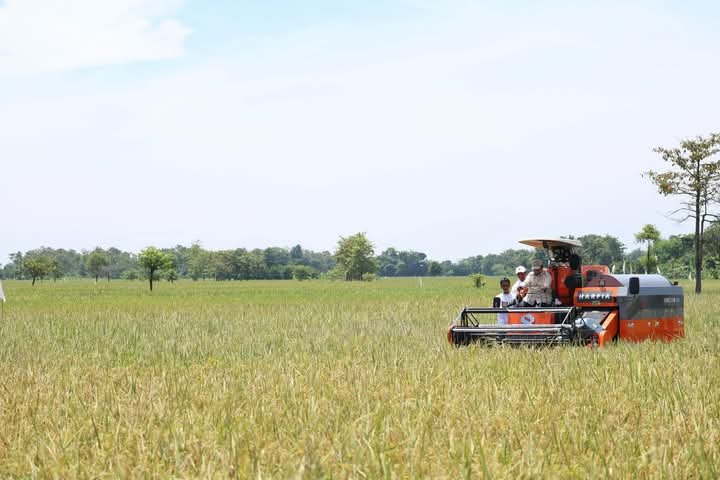 “Alhamdulillah, saya sangat bersyukur dan gembira dapat menyaksikan langsung semangat para petani dalam panen raya serentak ini. Mesin modern ini sangat membantu mereka,” ujar Presiden Prabowo.