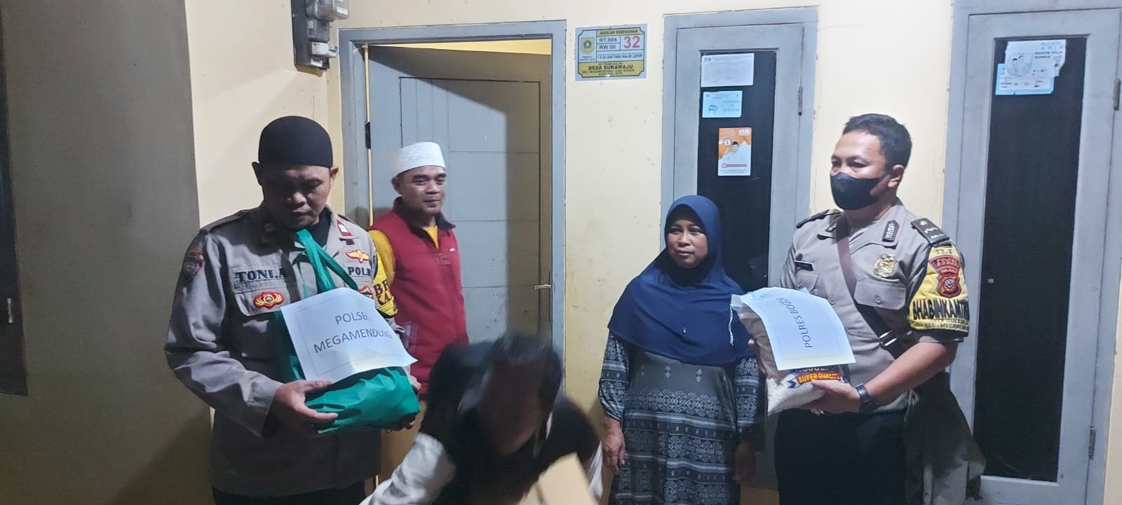 Bantuan yang di berikan langsung oleh Kapolsek Megamendung AKP Eddy Santosa dan Jajarannya dan di terima secara langsung oleh Warga yang terkena dampak bencana alam tanah longsor.