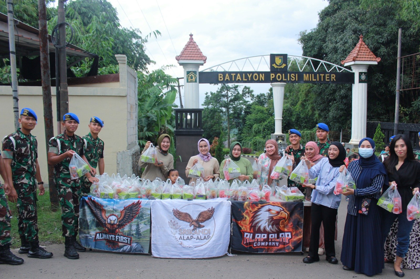 | Prajurit Batalyon Polisi Militer TNI Angkatan Darat (Yonpomad) bersama Persit melaksanakan aksi berbagi dengan membagikan takjil gratis. |